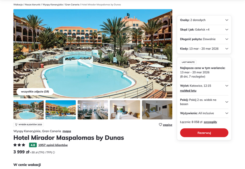 Aktualizacja: Gran Canaria last minute: 3* hotel z all inclusive za 2399 zł