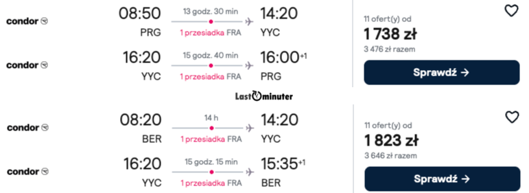 Wyjątkowo atrakcyjne połączenia lotnicze do Calgary obsługiwane są z lotnisk w Pradze i Berlinie, z wygodnymi przesiadkami we Frankfurcie nad Menem.