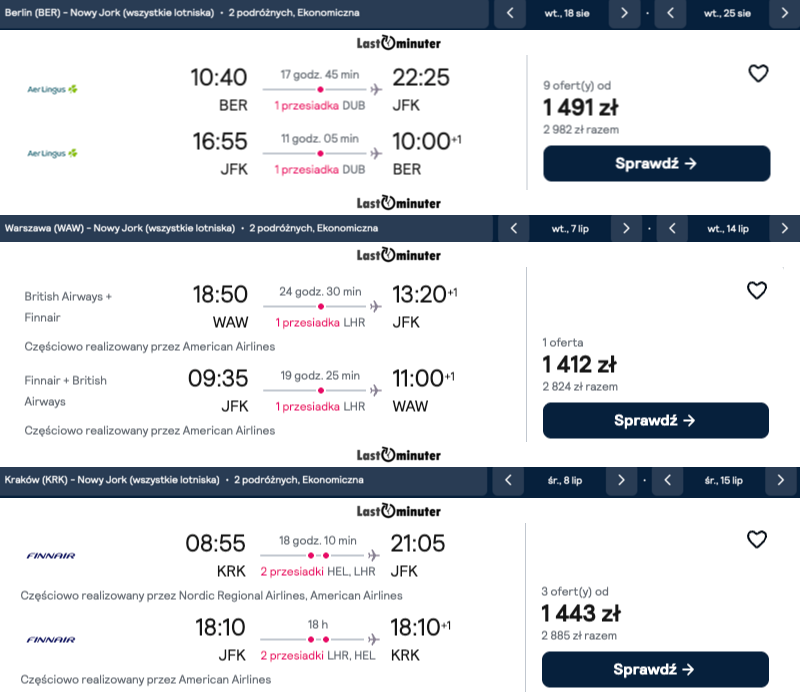 Połączenie lotnicze z Berlina, Warszawy lub Krakowa pozwala na sprawny przelot do Stanów Zjednoczonych, lądując na jednym z głównych lotnisk Nowego Jorku.