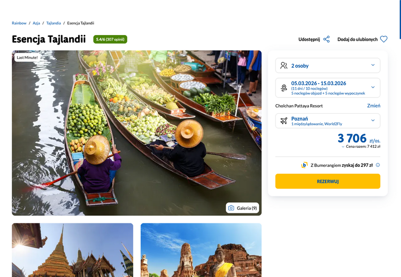 Aktualizacja: Podróż do dalekiej Tajlandii za 3747 zł (objazd + wypoczynek)
