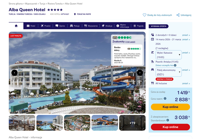 Misją Lastminuter.pl jest przedstawienie Ci najlepszych zdaniem naszej redakcji okazji na podróże. Opisujemy oferty znalezione przez nas w internecie i wskazujemy adresy internetowe, pod którymi samodzielnie możesz wykupić podróż lub elementy podróży. Ceny w artykułach są aktualne w chwili publikacji. Możemy otrzymywać wynagrodzenie od partnerów handlowych, do których Cię przekierowujemy. Nie ma to wpływu na cenę Twojej wycieczki. Powielanie publikacji zabronione.