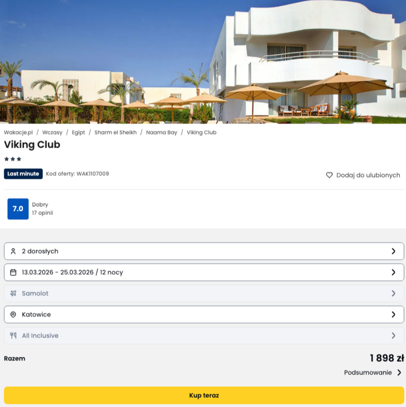Pobyt możesz skrócić (do wyboru wypoczynek od 2 do 12 dni) i zapłacisz mniej od tytułowej ceny. Dostępnych jest kilka terminów na marzec tego roku.