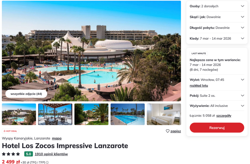 Lanzarote last minute: 4* hotel z all inclusive za 2499 zł