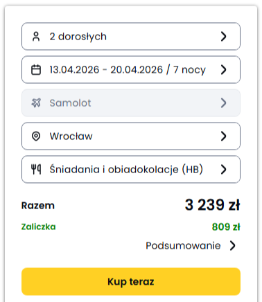 Oferty wycieczek dostarczone przez naszych partnerów nie są aktualizowane w czasie rzeczywistym, w związku z czym ceny i dostępność ofert mogą się nieznacznie różnić od aktualnych. Dokładamy wszelkich starań aby rozbieżności były jak najmniejsze.