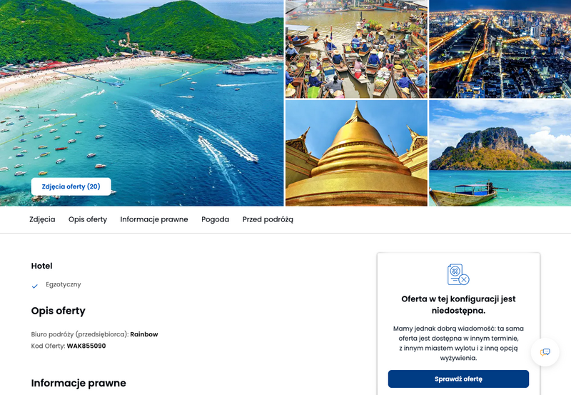 Niedostępność oferty została udokumentowana zrzutem ekranu.
