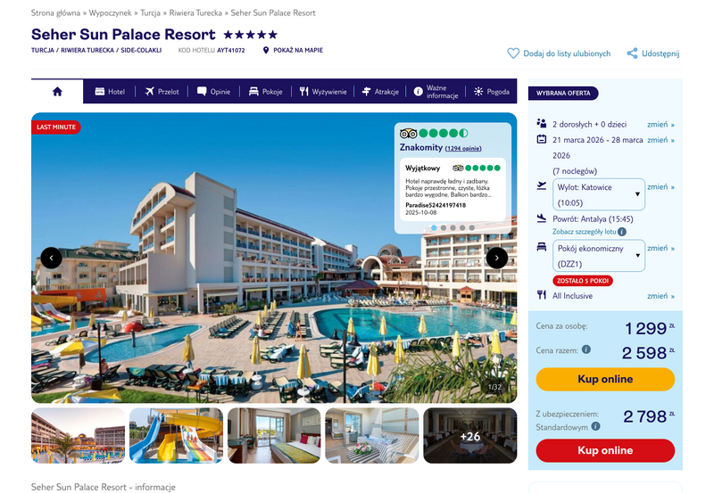 Misją Lastminuter.pl jest przedstawienie Ci najlepszych zdaniem naszej redakcji okazji na podróże. Opisujemy oferty znalezione przez nas w internecie i wskazujemy adresy internetowe, pod którymi samodzielnie możesz wykupić podróż lub elementy podróży. Ceny w artykułach są aktualne w chwili publikacji. Możemy otrzymywać wynagrodzenie od partnerów handlowych, do których Cię przekierowujemy. Nie ma to wpływu na cenę Twojej wycieczki. Powielanie publikacji zabronione.