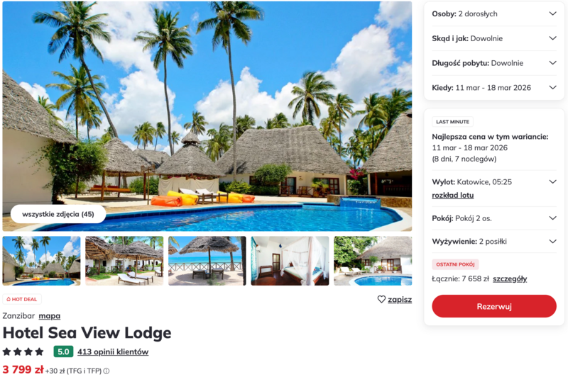 Zanzibar last minute: 4* hotel z wyżywieniem za 3799 zł