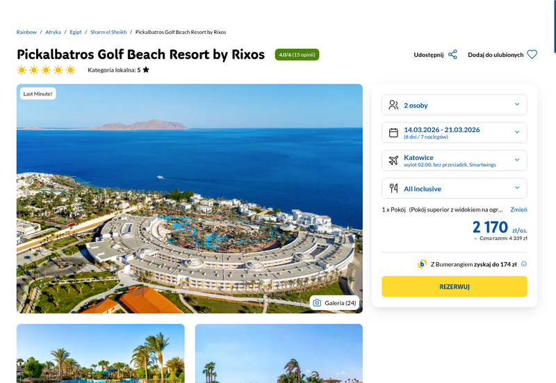 Aktualizacja: Egipt w wersji lux: 5* Pickalbatros Golf Beach Resort z all inclusive od 1970 zł