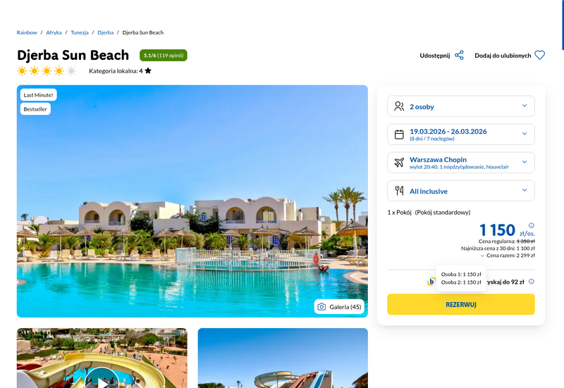 Misją Lastminuter.pl jest przedstawienie Ci najlepszych zdaniem naszej redakcji okazji na podróże. Opisujemy oferty znalezione przez nas w internecie i wskazujemy adresy internetowe, pod którymi samodzielnie możesz wykupić podróż lub elementy podróży. Ceny w artykułach są aktualne w chwili publikacji. Możemy otrzymywać wynagrodzenie od partnerów handlowych, do których Cię przekierowujemy. Nie ma to wpływu na cenę Twojej wycieczki. Powielanie publikacji zabronione.