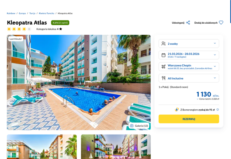 Misją Lastminuter.pl jest przedstawienie Ci najlepszych zdaniem naszej redakcji okazji na podróże. Opisujemy oferty znalezione przez nas w internecie i wskazujemy adresy internetowe, pod którymi samodzielnie możesz wykupić podróż lub elementy podróży. Ceny w artykułach są aktualne w chwili publikacji. Możemy otrzymywać wynagrodzenie od partnerów handlowych, do których Cię przekierowujemy. Nie ma to wpływu na cenę Twojej wycieczki. Powielanie publikacji zabronione.