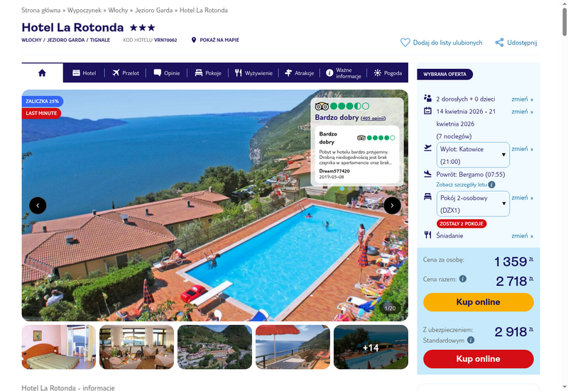 Aktualizacja: Włochy (Jezioro Garda): 3* hotel ze śniadaniami od 1350 zł. Dużo terminów z 8 miast