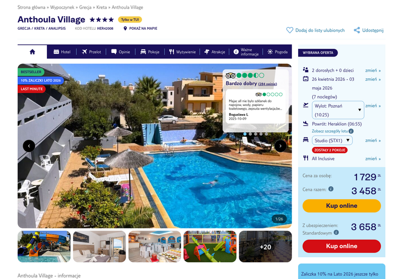 Aktualizacja: Majówka na Krecie: 4* hotel z all inclusive od 1699 zł