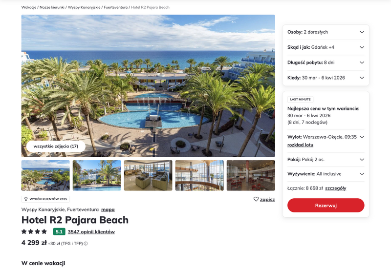 Aktualizacja: Wyspy Kanaryjskie (Fuerteventura) last minute: 4* R2 Pajara Beach z all inclusive za 2399 zł