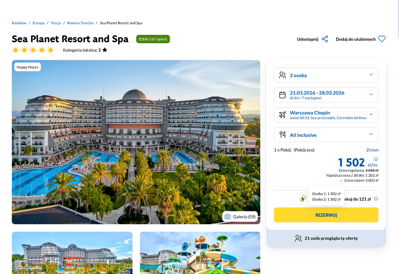 Misją Lastminuter.pl jest przedstawienie Ci najlepszych zdaniem naszej redakcji okazji na podróże. Opisujemy oferty znalezione przez nas w internecie i wskazujemy adresy internetowe, pod którymi samodzielnie możesz wykupić podróż lub elementy podróży. Ceny w artykułach są aktualne w chwili publikacji. Możemy otrzymywać wynagrodzenie od partnerów handlowych, do których Cię przekierowujemy. Nie ma to wpływu na cenę Twojej wycieczki. Powielanie publikacji zabronione.