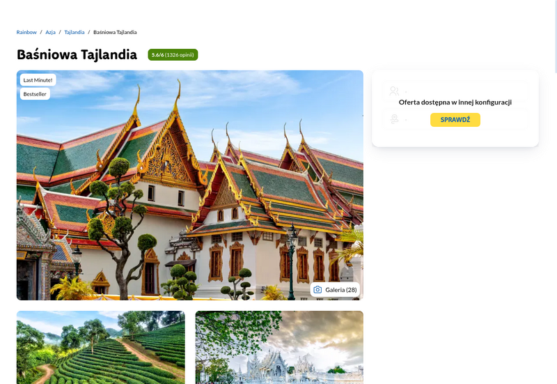 Oferty wycieczek dostarczone przez naszych partnerów nie są aktualizowane w czasie rzeczywistym, w związku z czym ceny i dostępność ofert mogą się nieznacznie różnić od aktualnych. Dokładamy wszelkich starań aby rozbieżności były jak najmniejsze.