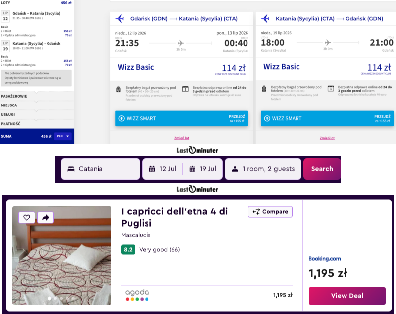 Marzysz o prawdziwym włoskim słońcu i zapachu świeżo parzonego espresso o poranku? Teraz to marzenie jest na wyciągnięcie ręki dzięki wyjątkowej okazji na bezpośrednie loty z Gdańska prosto do serca gorącej Sycylii. Wyobraź sobie lipcowe popołudnie w Katanii, gdzie błękit nieba łączy się z turkusem morza, a majestatyczna Etna tworzy tło dla Twoich wakacyjnych wspomnień. To idealny moment, aby zarezerwować bilety w niezwykle atrakcyjnej cenie i zagwarantować sobie urlop pełen kulinarnych rozkoszy oraz błogiego relaksu na złotych plażach.Rezerwacja jest prosta i szybka, a na pokład możesz zabrać bezpłatny bagaż podręczny, co czyni tę ofertę jeszcze bardziej opłacalną. Katania to także genialna baza wypadowa do odkrywania ukrytych perełek Italii, a świetna komunikacja pozwoli Ci swobodnie zwiedzać wyspę bez nadwyrężania budżetu. Nie zwlekaj, bo takie okazje w szczycie sezonu znikają błyskawicznie. Pozwól sobie na odrobinę komfortu w niskiej cenie i poczuj prawdziwy klimat południowych Włoch już dziś. Twoja sycylijska przygoda zaczyna się właśnie tutaj, wystarczy kilka klików, by przenieść się do krainy słońca.