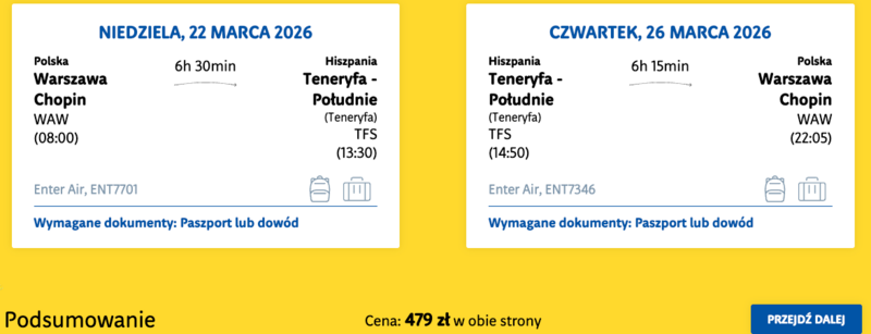 Teneryfa, Wyspy Kanaryjskie z Warszawy
