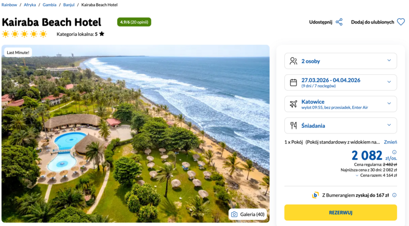 Okazja: Gambia, 5* hotel ze śniadaniami przy plaży od 2082 zł!