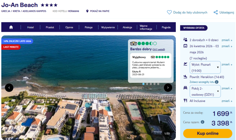 Misją Lastminuter.pl jest przedstawienie Ci najlepszych zdaniem naszej redakcji okazji na podróże. Opisujemy oferty znalezione przez nas w internecie i wskazujemy adresy internetowe, pod którymi samodzielnie możesz wykupić podróż lub elementy podróży. Ceny w artykułach są aktualne w chwili publikacji. Możemy otrzymywać wynagrodzenie od partnerów handlowych, do których Cię przekierowujemy. Nie ma to wpływu na cenę Twojej wycieczki. Powielanie publikacji zabronione.