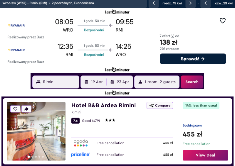 Misją Lastminuter.pl jest przedstawienie Ci najlepszych zdaniem naszej redakcji okazji na podróże. Opisujemy oferty znalezione przez nas w internecie i wskazujemy adresy internetowe, pod którymi samodzielnie możesz wykupić podróż lub elementy podróży. Ceny w artykułach są aktualne w chwili publikacji. Możemy otrzymywać wynagrodzenie od partnerów handlowych, do których Cię przekierowujemy. Nie ma to wpływu na cenę Twojej wycieczki. Powielanie publikacji zabronione.