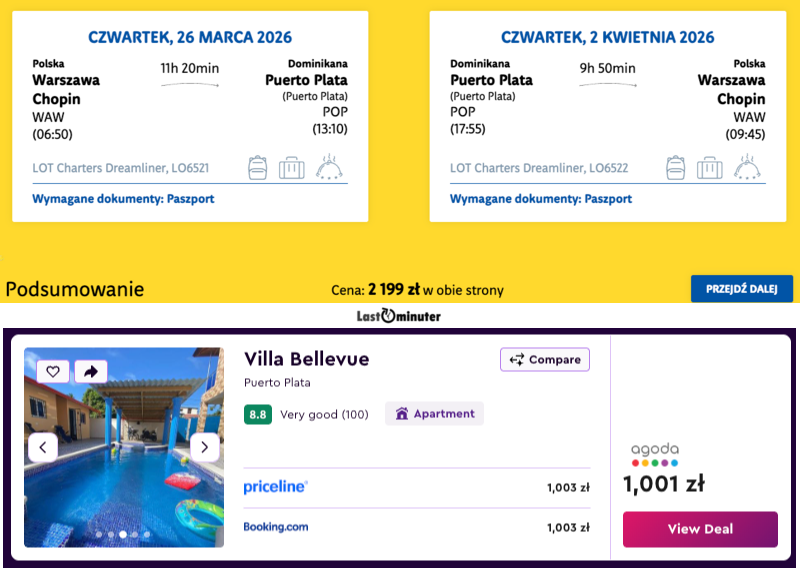 Misją Lastminuter.pl jest przedstawienie Ci najlepszych zdaniem naszej redakcji okazji na podróże. Opisujemy oferty znalezione przez nas w internecie i wskazujemy adresy internetowe, pod którymi samodzielnie możesz wykupić podróż lub elementy podróży. Ceny w artykułach są aktualne w chwili publikacji. Możemy otrzymywać wynagrodzenie od partnerów handlowych, do których Cię przekierowujemy. Nie ma to wpływu na cenę Twojej wycieczki. Powielanie publikacji zabronione.