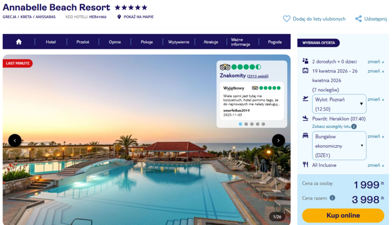 Misją Lastminuter.pl jest przedstawienie Ci najlepszych zdaniem naszej redakcji okazji na podróże. Opisujemy oferty znalezione przez nas w internecie i wskazujemy adresy internetowe, pod którymi samodzielnie możesz wykupić podróż lub elementy podróży. Ceny w artykułach są aktualne w chwili publikacji. Możemy otrzymywać wynagrodzenie od partnerów handlowych, do których Cię przekierowujemy. Nie ma to wpływu na cenę Twojej wycieczki. Powielanie publikacji zabronione.