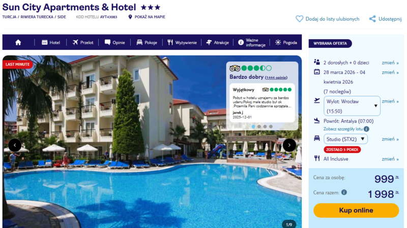 Misją Lastminuter.pl jest przedstawienie Ci najlepszych zdaniem naszej redakcji okazji na podróże. Opisujemy oferty znalezione przez nas w internecie i wskazujemy adresy internetowe, pod którymi samodzielnie możesz wykupić podróż lub elementy podróży. Ceny w artykułach są aktualne w chwili publikacji. Możemy otrzymywać wynagrodzenie od partnerów handlowych, do których Cię przekierowujemy. Nie ma to wpływu na cenę Twojej wycieczki. Powielanie publikacji zabronione.