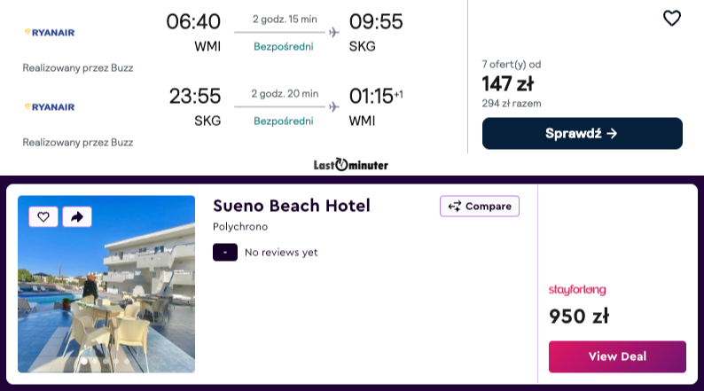 Wylot zaplanowano z lotniska Warszawa-Modlin, co stanowi doskonałą okazję na wiosenne wczasy w Grecji. Rejs obsługiwany jest przez linię Buzz i trwa nieco ponad dwie godziny, dzięki czemu już przed południem można cieszyć się śródziemnomorską atmosferą. To wyjątkowo korzystne rozwiązanie dla osób szukających biletów lotniczych w atrakcyjnej opcji, zwłaszcza że powrót do kraju również odbywa się bez przesiadek.Wybierając ten termin, można liczyć na bardzo przyjemną aurę, która sprzyja zwiedzaniu i spacerom wzdłuż nabrzeża. Pogoda w tej części Europy staje się wtedy łagodna, a temperatury są przeważenie wyższe niż w Polsce, często przekraczając kilkanaście stopni Celsjusza. Saloniki i okolice oferują wówczas mnóstwo słońca i wytchnienie od zimowych chłodów, przy zachowaniu kameralnej atmosfery przed szczytem sezonu turystycznego. To idealny moment na poznawanie greckiej kultury, lokalnej kuchni oraz zabytków bez konieczności zmagania się z upałami.