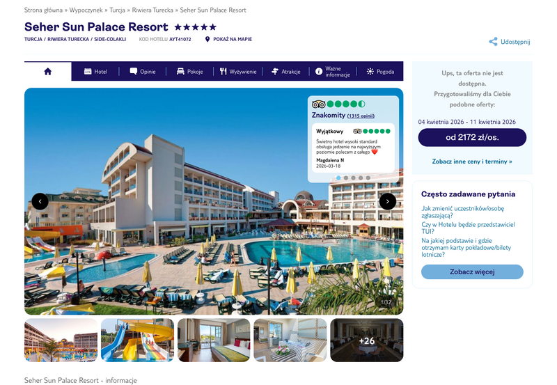 Oferty wycieczek dostarczone przez naszych partnerów nie są aktualizowane w czasie rzeczywistym, w związku z czym ceny i dostępność ofert mogą się nieznacznie różnić od aktualnych. Dokładamy wszelkich starań aby rozbieżności były jak najmniejsze.