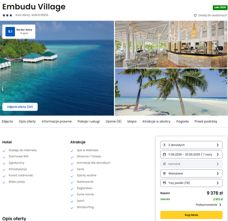 Ten kameralny wypoczynek w otoczeniu tropikalnej zieleni i białego piasku rozpoczyna się wylotem z Warszawy lub Krakowa.