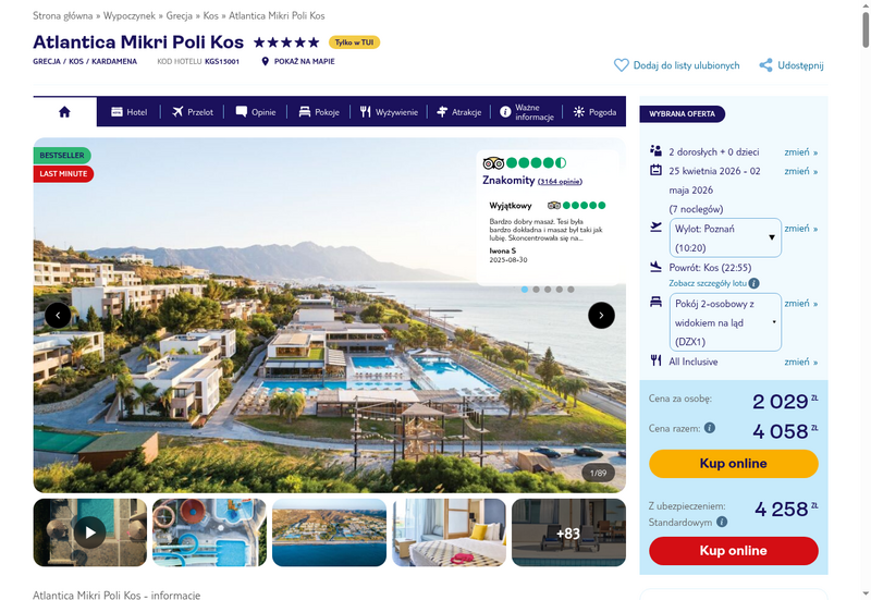 Aktualizacja: Majówka w Grecji: 5* Atlantica Mikri Poli Kos hotel z all inclusive od 1979 zł
