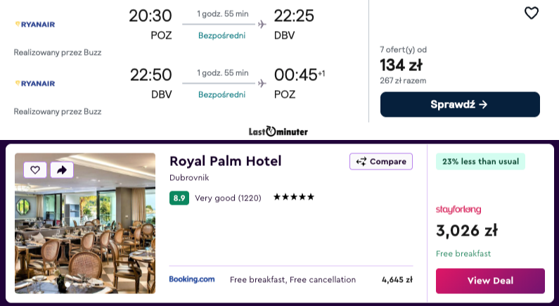 Misją Lastminuter.pl jest przedstawienie Ci najlepszych zdaniem naszej redakcji okazji na podróże. Opisujemy oferty znalezione przez nas w internecie i wskazujemy adresy internetowe, pod którymi samodzielnie możesz wykupić podróż lub elementy podróży. Ceny w artykułach są aktualne w chwili publikacji. Możemy otrzymywać wynagrodzenie od partnerów handlowych, do których Cię przekierowujemy. Nie ma to wpływu na cenę Twojej wycieczki. Powielanie publikacji zabronione.