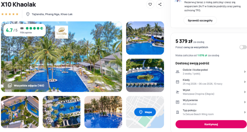 Pobyt w pięciogwiazdkowym hotelu X10 Khaolak to gwarancja najwyższego standardu, co potwierdzają liczne pozytywne opinie gości zachwyconych miłą obsługą i nienaganną czystością. Obiekt położony jest tuż przy piaszczystej plaży Nang Thong, a na miejscu można korzystać z licznych basenów oraz parku wodnego. Cały wyjazd odbywa się w kompleksowej opcji all inclusive, dzięki czemu wyśmienite lokalne potrawy i międzynarodowe dania są dostępne na wyciągnięcie ręki bez dodatkowych kosztów.