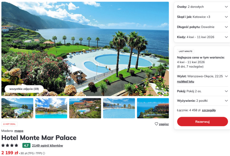 Ten rajski wypoczynek na Maderze rozpoczyna się od komfortowej podróży z Warszawy-Okęcia.