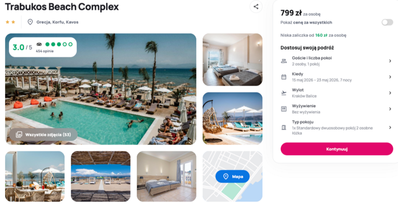 Grecja w tym okresie wita gości przyjemną, wiosenną aurą z temperaturami przekraczającymi dwadzieścia stopni Celsjusza, co sprzyja zarówno odpoczynkowi na leżaku, jak i spacerom po urokliwym Kavos. Na miejscu czeka kompleks Trabukos Beach, położony zaledwie kilka kroków od piaszczystego brzegu i krystalicznie czystej wody. Wybór tego obiektu pozwala cieszyć się bliskością lokalnych kawiarni, barów oraz tętniącego życiem centrum miejscowości, które nigdy nie zasypia.