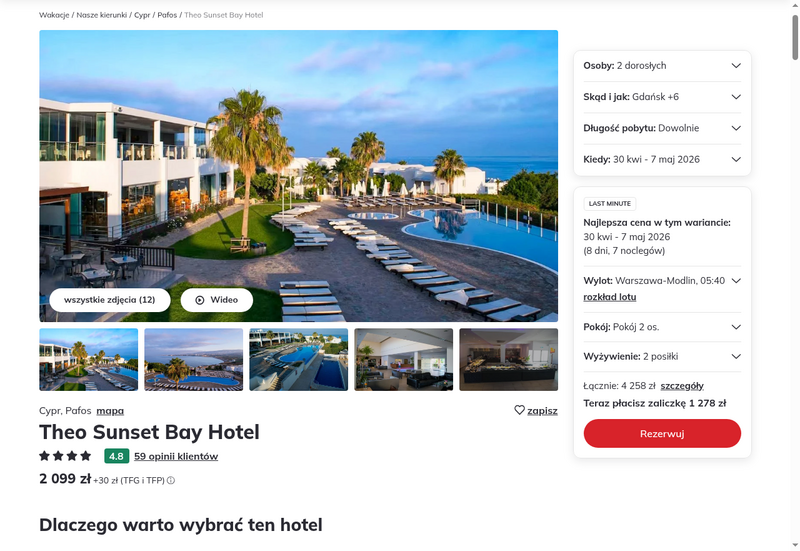 Misją Lastminuter.pl jest przedstawienie Ci najlepszych zdaniem naszej redakcji okazji na podróże. Opisujemy oferty znalezione przez nas w internecie i wskazujemy adresy internetowe, pod którymi samodzielnie możesz wykupić podróż lub elementy podróży. Ceny w artykułach są aktualne w chwili publikacji. Możemy otrzymywać wynagrodzenie od partnerów handlowych, do których Cię przekierowujemy. Nie ma to wpływu na cenę Twojej wycieczki. Powielanie publikacji zabronione.