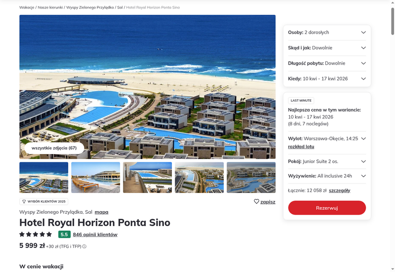 Aktualizacja: Luksus na Wyspach Zielonego Przylądka: 5* hotel z all inclusive 24h przy plaży za 3699 zł