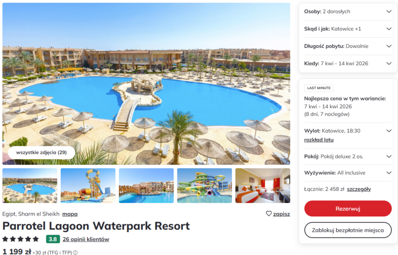 Ten radosny kierunek na wiosenny wypoczynek z Katowic lub Warszawy zapewnia słońce i mnóstwo wodnych atrakcji.
