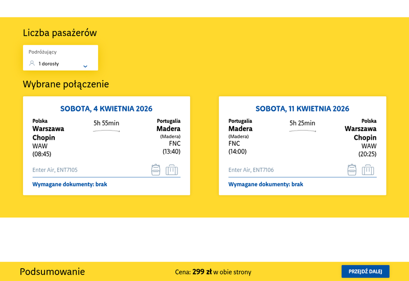 Tanie loty czarterowe z dużym bagażem na Maderę za 299 zł