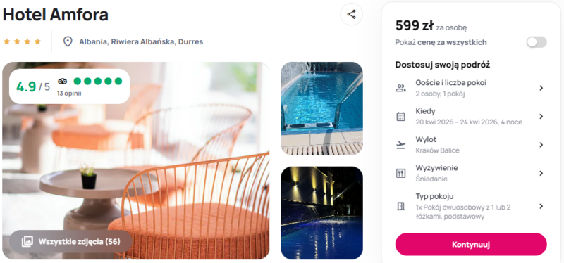 Misją Lastminuter.pl jest przedstawienie Ci najlepszych zdaniem naszej redakcji okazji na podróże. Opisujemy oferty znalezione przez nas w internecie i wskazujemy adresy internetowe, pod którymi samodzielnie możesz wykupić podróż lub elementy podróży. Ceny w artykułach są aktualne w chwili publikacji. Możemy otrzymywać wynagrodzenie od partnerów handlowych, do których Cię przekierowujemy. Nie ma to wpływu na cenę Twojej wycieczki. Powielanie publikacji zabronione.