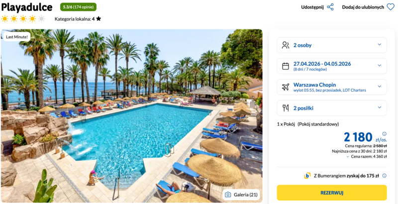 Misją Lastminuter.pl jest przedstawienie Ci najlepszych zdaniem naszej redakcji okazji na podróże. Opisujemy oferty znalezione przez nas w internecie i wskazujemy adresy internetowe, pod którymi samodzielnie możesz wykupić podróż lub elementy podróży. Ceny w artykułach są aktualne w chwili publikacji. Możemy otrzymywać wynagrodzenie od partnerów handlowych, do których Cię przekierowujemy. Nie ma to wpływu na cenę Twojej wycieczki. Powielanie publikacji zabronione.