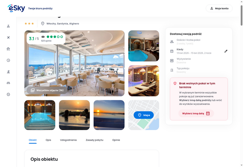 Niedostępność oferty została udokumentowana zrzutem ekranu.
