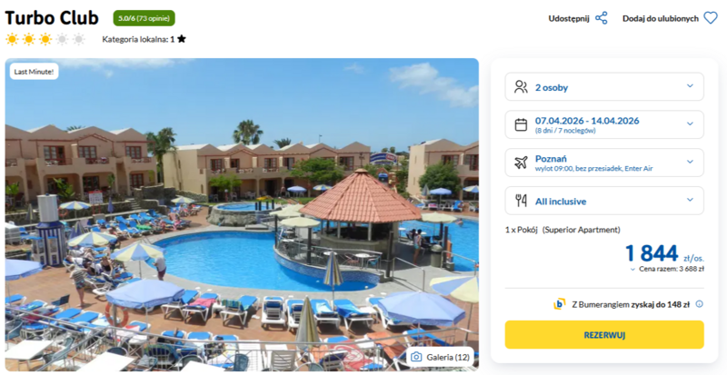 Zakwaterowanie przewidziano w nowoczesnym kompleksie Turbo Club, który według opinii gości zasługuje na więcej niż oficjalne kategorie, oferując komfortowe, odnowione apartamenty z klimatyzacją. Wybierając ten wyjazd, można liczyć na pełną wygodę, ponieważ wycieczka jest w opcji all inclusive, obejmującej nie tylko bogate posiłki, ale także lokalne napoje i popołudniowy serwis kawowy. Na miejscu dostępna jest opieka polskiego rezydenta oraz bezpłatny transport na słynną, piaszczystą plażę Maspalomas.