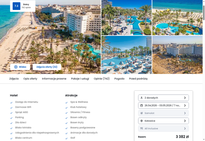 Oferty wycieczek dostarczone przez naszych partnerów nie są aktualizowane w czasie rzeczywistym, w związku z czym ceny i dostępność ofert mogą się nieznacznie różnić od aktualnych. Dokładamy wszelkich starań aby rozbieżności były jak najmniejsze.