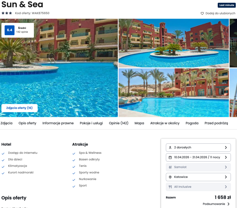 Wiosenny wyjazd do Egiptu to strzał w dziesiątkę dla miłośników słonecznej aury, gdyż temperatury w tym regionie stają się wówczas niezwykle przyjemne, zachęcając do pierwszych kąpieli morskich. Według opinii użytkowników, pokoje są przestronne i wygodne, a obsługa serwuje wyborne napoje orzeźwiające przy basenie. Na miejscu można oddać się pasji nurkowania w krystalicznie czystych wodach Morza Czerwonego lub po prostu relaksować się pod bezpłatnymi parasolami na hotelowej plaży. To doskonała okazja, by naładować baterie w promieniach afrykańskiego słońca.