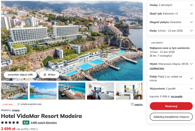 Luksusowe wczasy na słonecznej Maderze z wylotem z Warszawy-Okęcia to propozycja dla osób ceniących elegancję i bezpośrednią bliskość oceanu.