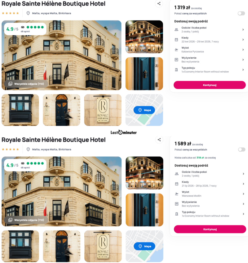 Misją Lastminuter.pl jest przedstawienie Ci najlepszych zdaniem naszej redakcji okazji na podróże. Opisujemy oferty znalezione przez nas w internecie i wskazujemy adresy internetowe, pod którymi samodzielnie możesz wykupić podróż lub elementy podróży. Ceny w artykułach są aktualne w chwili publikacji. Możemy otrzymywać wynagrodzenie od partnerów handlowych, do których Cię przekierowujemy. Nie ma to wpływu na cenę Twojej wycieczki. Powielanie publikacji zabronione.