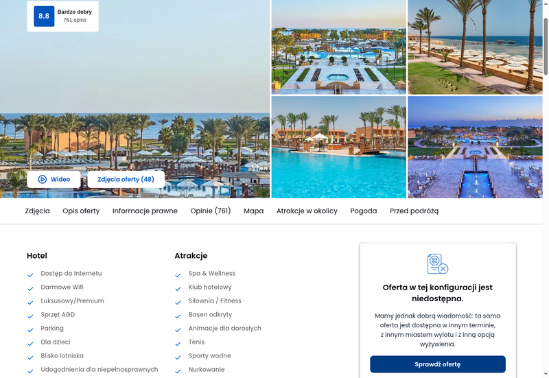 Niedostępność oferty została udokumentowana zrzutem ekranu.