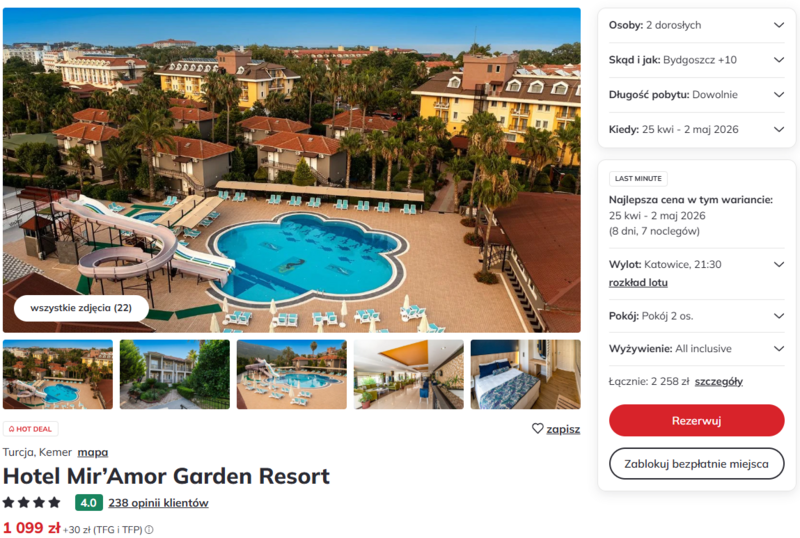 Misją Lastminuter.pl jest przedstawienie Ci najlepszych zdaniem naszej redakcji okazji na podróże. Opisujemy oferty znalezione przez nas w internecie i wskazujemy adresy internetowe, pod którymi samodzielnie możesz wykupić podróż lub elementy podróży. Ceny w artykułach są aktualne w chwili publikacji. Możemy otrzymywać wynagrodzenie od partnerów handlowych, do których Cię przekierowujemy. Nie ma to wpływu na cenę Twojej wycieczki. Powielanie publikacji zabronione.