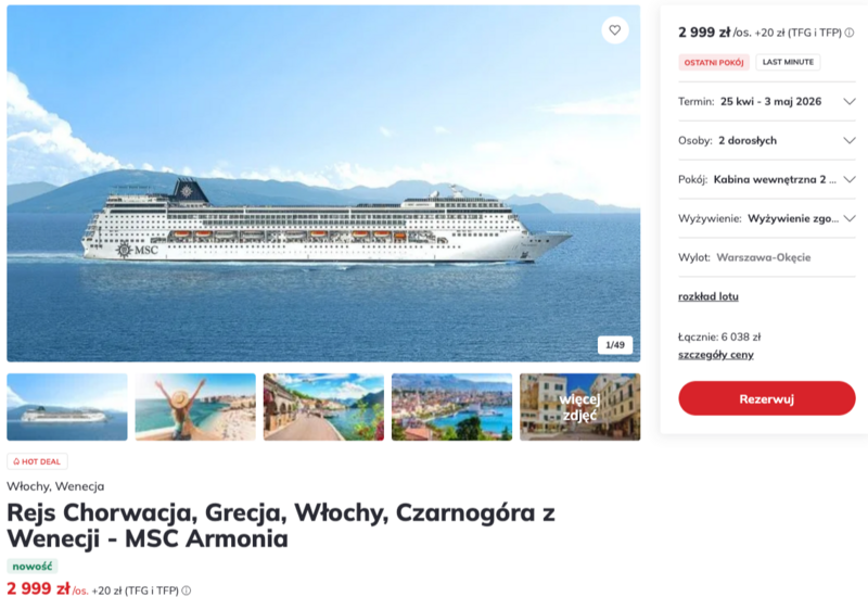 Majówka na morzu: Rejs komfortowym statkiem + nocleg w Wenecji + loty z Polski za 2999 zł